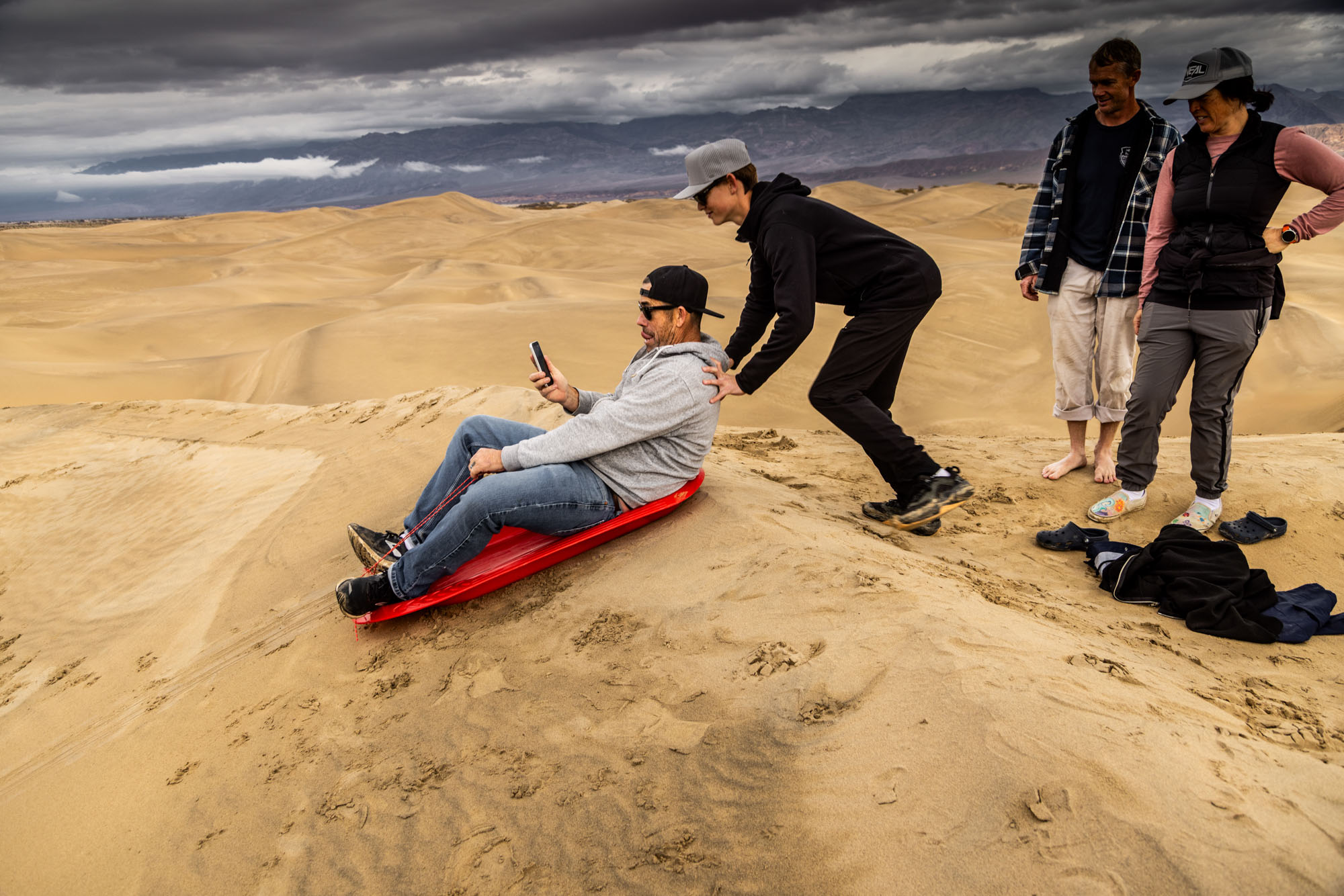 In order to keep the kids entertained we hiked and explored old mud caves from the 1920’s, sledded down hard packed rain-soaked dunes and strolled a historic mining town to get a feel for the wild-wild west. There are remnants of a bank, a mercantile, a train station that transformed into a casino, a Union Pacific wooden train car, a jail and a cemetery.